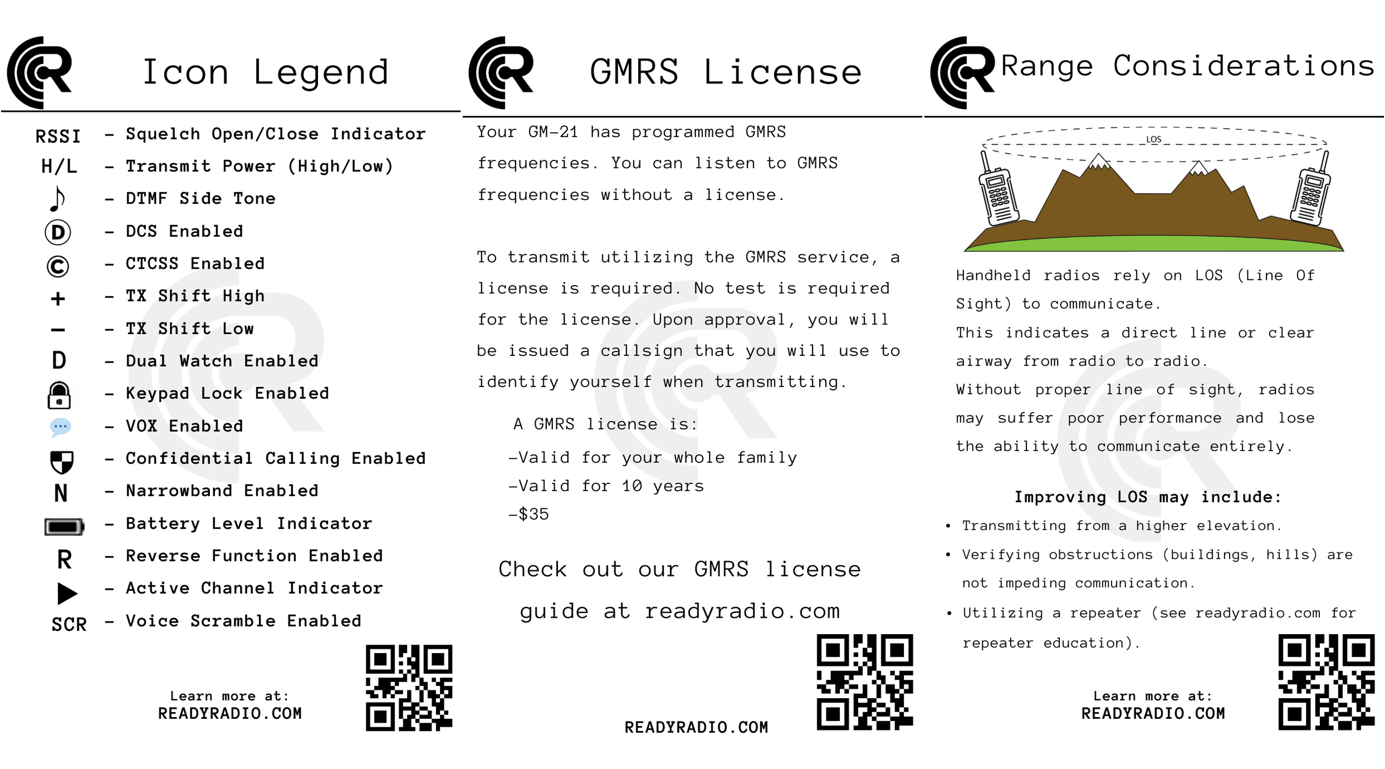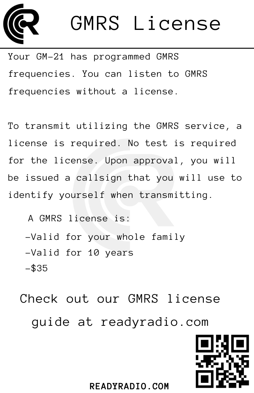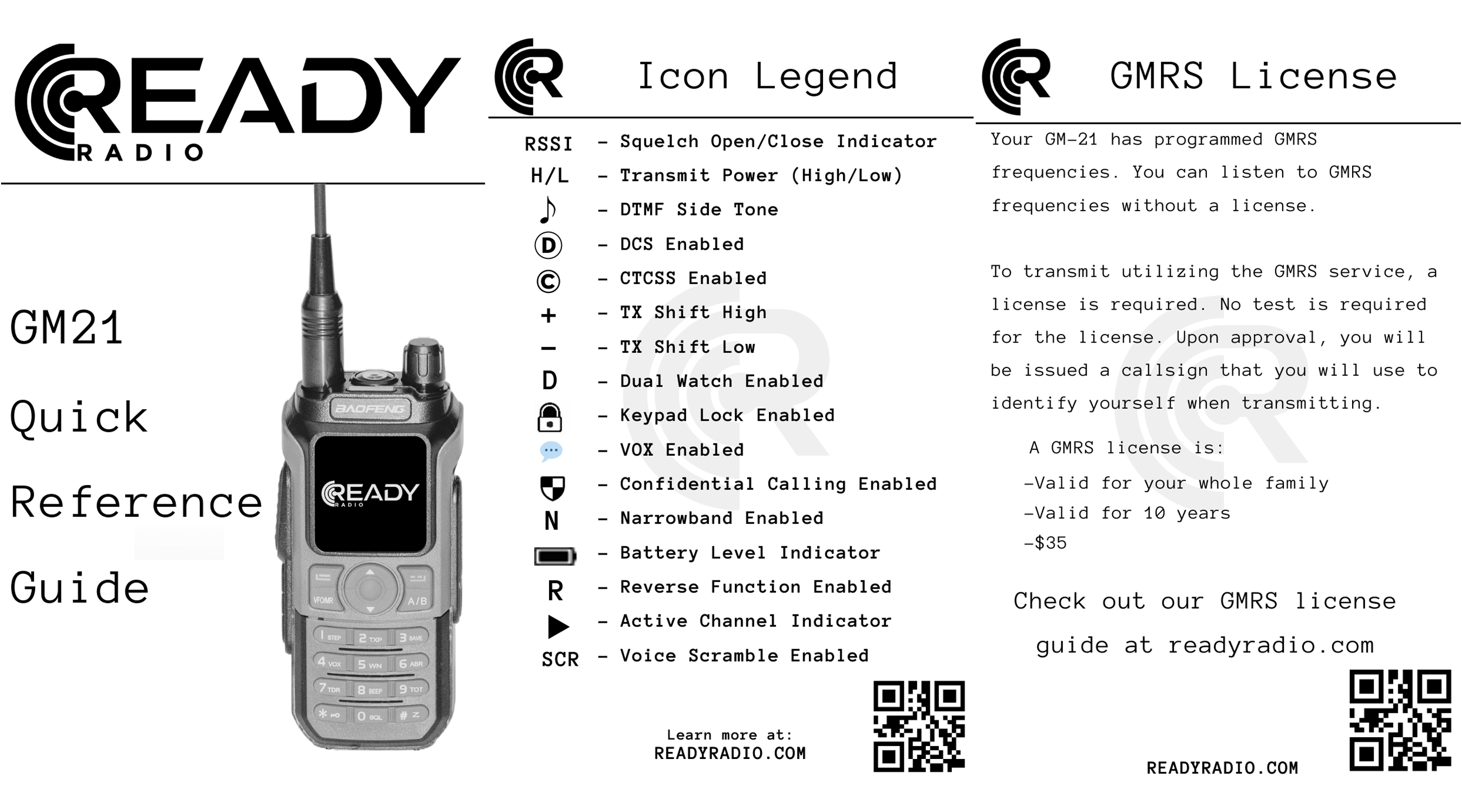 The Baofeng GM21 is a powerful and compact GMRS two-way radio designed for reliable communication in outdoor, tactical, and emergency scenarios. Built for performance, the GM21 features: