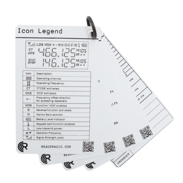 The Ready Radio™ Programming Cards are your essential quick-reference tool for mastering your radio. Built for speed and clarity, these durable pocket-sized cards walk you step-by-step through the process of programming repeater channels directly into your radio—no guesswork, no confusion.